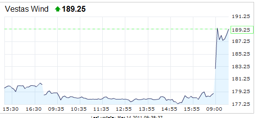 Und Vestas hat natuerlich aus seine Problemchen (z.B. Ueberkapazitaeten in Europa, deshalb wurde auch letztes jahr die Stillegung von Werken in Europa beschlossen). Was mir auch etwas Sorgen macht ist der zoegerliches Auftragseingang im Quartal 1...allerdings hat Vestas ein satt gefuelltes Auftragsbuch aus dem Jahr 2010.