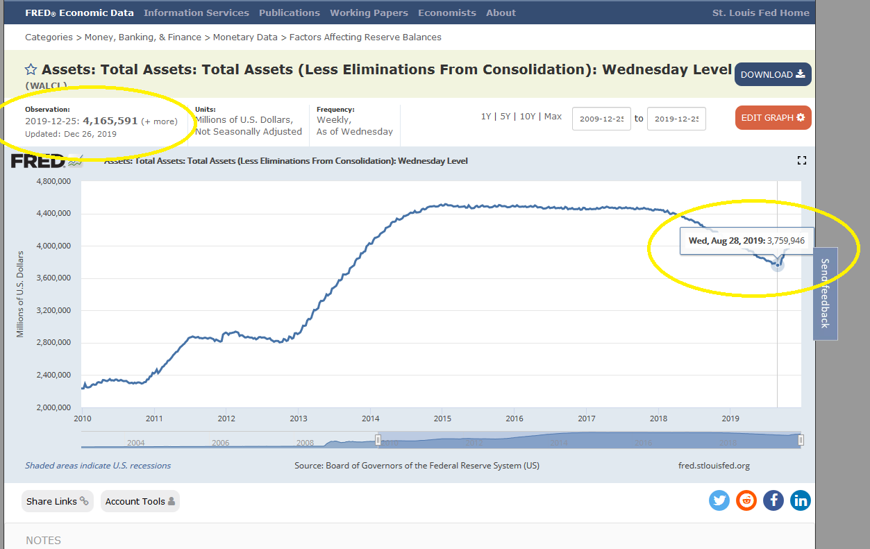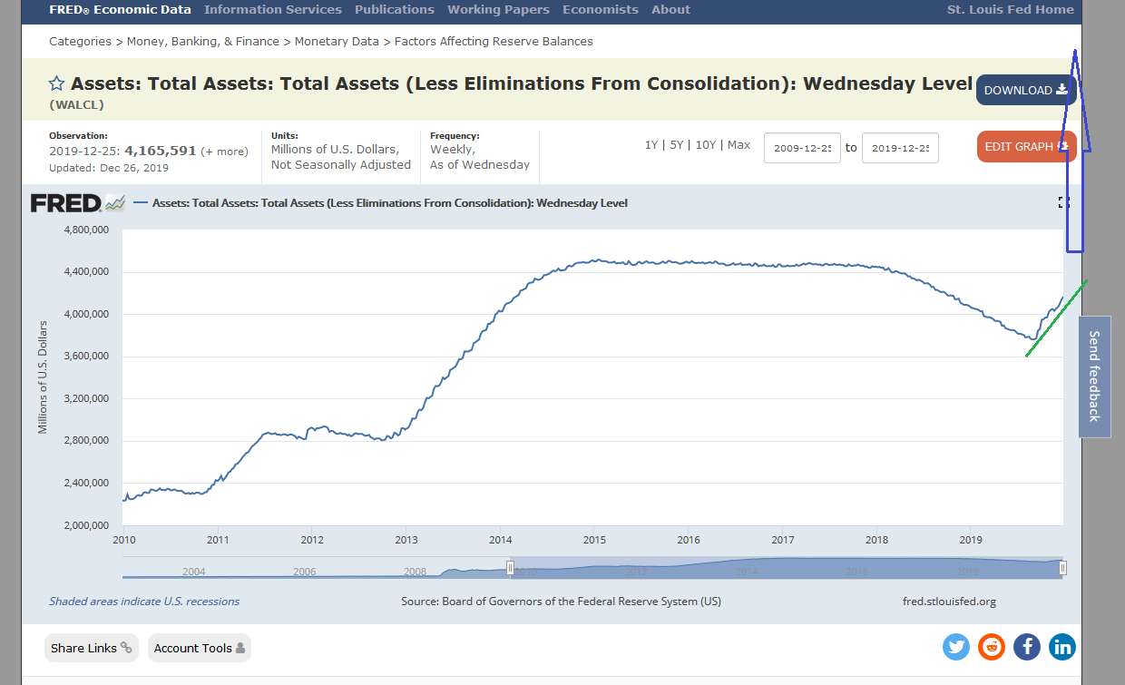 Trumps Schuldenexzesse sorgen dafür das Banken in den USA immer mehr Staatsanleihen kaufen müssen. Diese kauft nun die FED Ihnen ab, damit sie liquide bleiben.