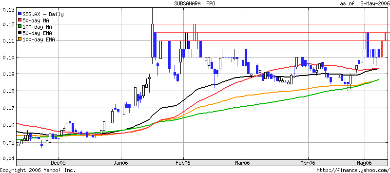 Scheinbar haben es nun die meisten Sub-Sahara-Investierten in "Down Under" verstanden, dass man seine Aktien nicht jedes Mal verkaufen muss, sobald man 20 Austr.$ Gewinn gemacht hat.:-)! Aber ich hoffe mal, dass die Bohrergebnisse nun auch dort zeigen, dass die Aktie noch ein riesiges Potential besitzt, zumal sich der Goldpreis nun über 700 $ befindet. Ich denke mir, dass die Wiederstände von 0,115 und 0,12, die uns sts091280 so anschaulich graphisch dargestellt hat, spätestens in der nächsten Woche deutlich gebrochen werden. Das verspricht also ein schöner Sommer zu werden....Gruß an alle
