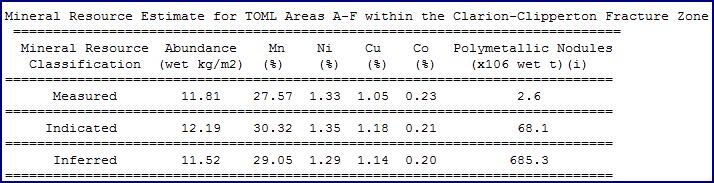 Zitat:" Nautilus' CEO Mike Johnston commented, "It is exciting to announce this increase in the CCZ project's inferred mineral resource base from 410 Mt (wet) to 685 Mt (wet) as well the upgrade of an additional 68 Mt (wet) into the indicated category and 2.6 Mt into the measured category". ENDE Zitat