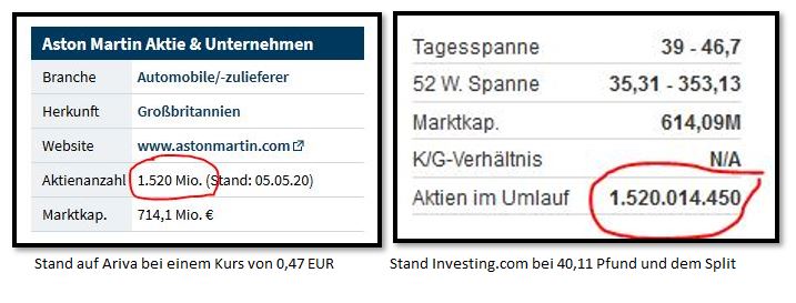 Am 01.04.2020 soll ein Aktiensplit gewesen sein? Split-Verhältnis 3.115 zu 1 ???