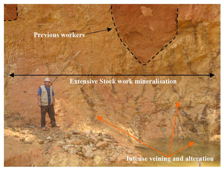 Intense stock work and vein mineralisation continues into the highly altered surrounding country rock and the width, strike and depth extent are not yet known.