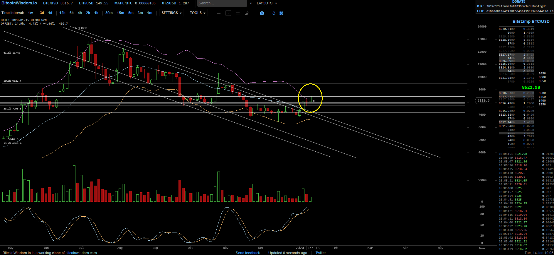 am 19. würde der Preis wenn er so bleibt aus dem Trend rauslaufen oder im Trend bleiben und steigen