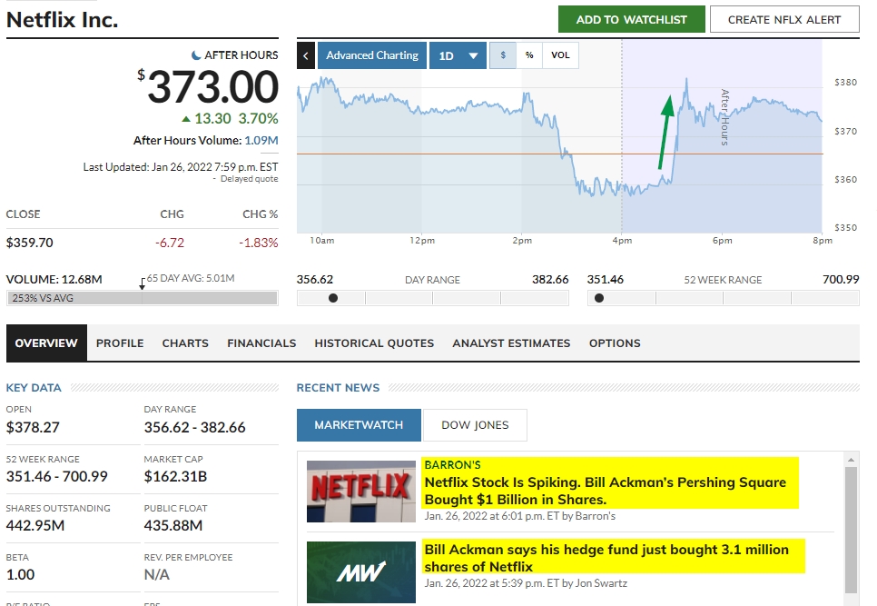 nachdem Bill Ackmann, als Großinvestor bereits über 3 Millionen Aktien gekauft hat, legt nun auch der Co-CEO von Netflix, Reed Hastings, mit über 20 $ Millionen nach !