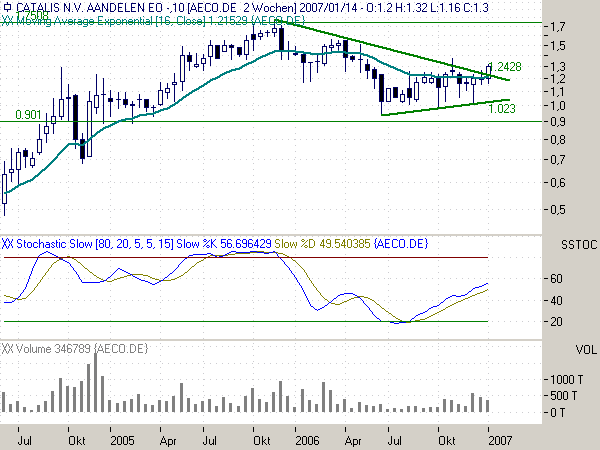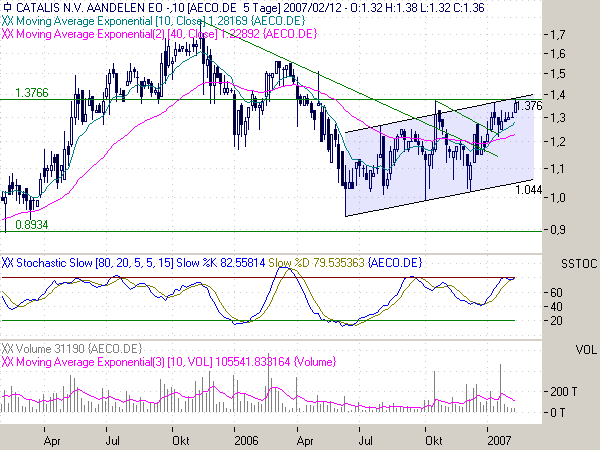 Die Analysten würden für 2007 in der Gruppe mit einem Umsatz von mehr als 30 Millionen Euro rechnen. Das Finanzergebnis werde nunmehr negativ ausfallen und mit 350.000 Euro pro Jahr zu Buche schlagen. Vor Steuern würden die Analysten einen Profit von mindestens vier Millionen Euro erwarten. Die Steuerquote liege bei der in Holland ansässigen Gesellschaft bei zehn Prozent. Netto würden die Analysten sodann mit einem Überschuss von mehr als 3,6 Millionen Euro rechnen. Laut dem Vorstand habe Catalis die eigenen Ziele im vergangenen Jahr voll erfüllt. Somit sollten sich die Einnahmen auf mehr als 10,5 Millionen Euro belaufen und der Gewinn vor Steuern auf mindestens drei Millionen Euro. Nach Steuern sollte der Profit bei über 2,7 Millionen Euro liegen.