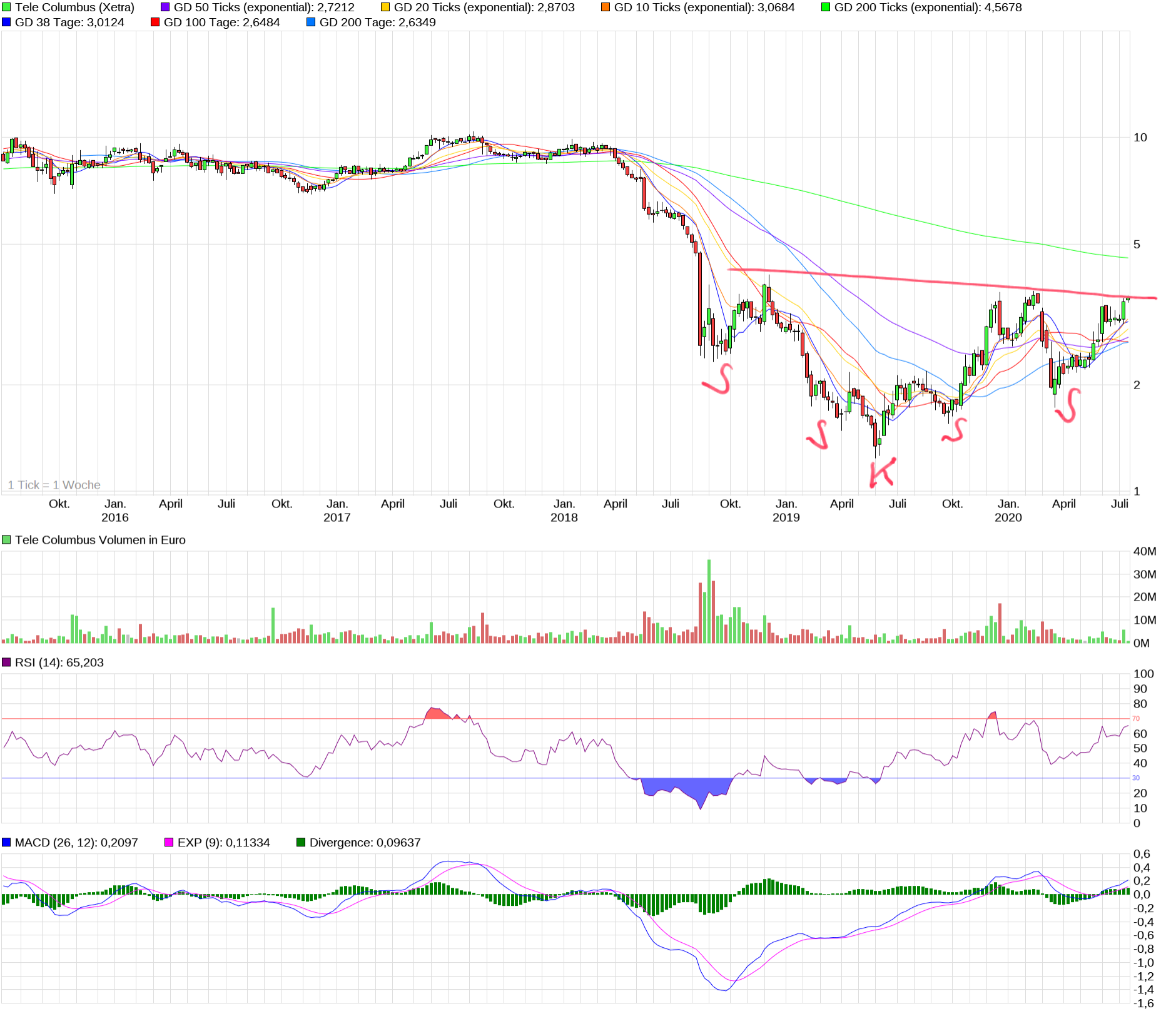 Wenn man aber der Charttechnik und der Formation der verschachtelten inversen SKS vertrauen will, könnte es sehr langfristig betrachtet vielleicht auch wieder in diese Regionen von 2015 bis 2018 gehen. Denn nicht vergessen sollte man bei Tele Columbus auch die Möglichkeit einer Übernahme und dabei wurden in der Vergangenheit für Unternehmen der Kabelbranche sehr viel höhere Preise gezahlt, als die heutige Bewertung von TC hergibt.