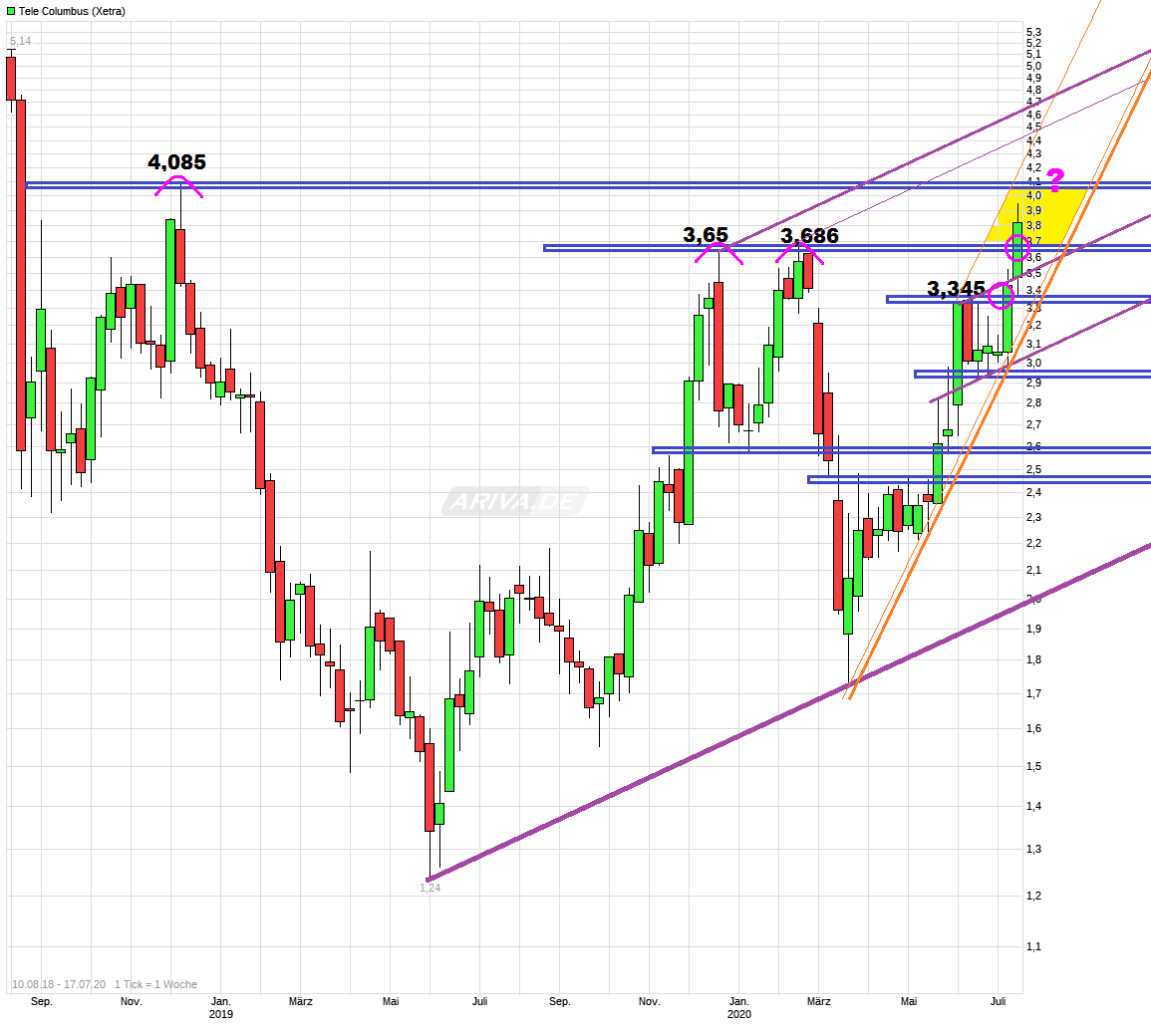 Durch die jüngste SDAX Aufnahme dürften jetzt auch wieder vermehrt bestimmte instit. Vermögensverwalter hinzukommen als potenzielle Käufer. Gibt viele Fonds die nur in Werte investieren die auch in den größeren klassischen Indizes notieren. Der frische Break des Widerstandes im Bereich 3,65/68 hat sicherlich erstmal gewisse CT induzierte Käufe zu Beginn heute ausgelöst. Jetzt kommt es darauf an diese Marken auch nachhaltig zu verteidigen bzw. auch Käufer weiter zu generieren die nicht alleine auf CT Signale setzen. Sollte die Region 3,65/68 nachhaltig verteidigt werden, dann wäre die nächste (Zwischen-) Hürde 4,085. Das TC Geschäftsmodell ist erwartungsgemäß imun gegen Corona-Auswirkungen und die klare Capex Reduzierung sollte im laufenden Jahr der Marge nicht schaden.