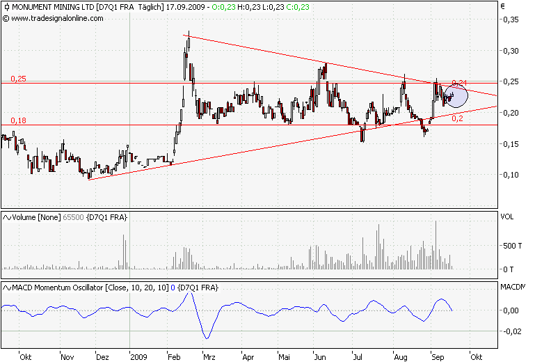 Prognose wie ich das sehe dürfte nach einen  klein­en Rücksetzer­ als nächstes die 0,25€ Wiederstan­d fallen, wie weit es dann nach oben geht mag ich nicht zu prognostiz­ieren.