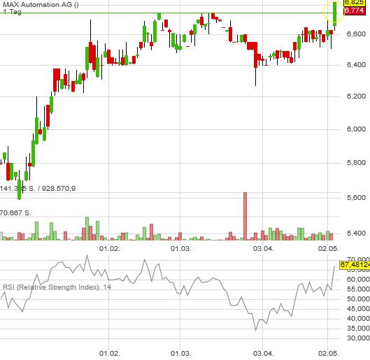 bei einem schönen Anstieg. Die Aktie läuft weiterhin super in Richtung 8€.