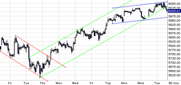 So kleine Korrektur, binn bei 6001 long und bei 6014 wieder raus, 13 Punkte reichen für heute.