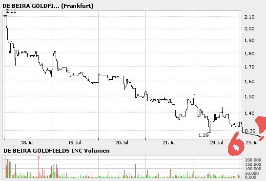 Realtime-Taxe für DE BEIRA GOLDFIELDS INC.