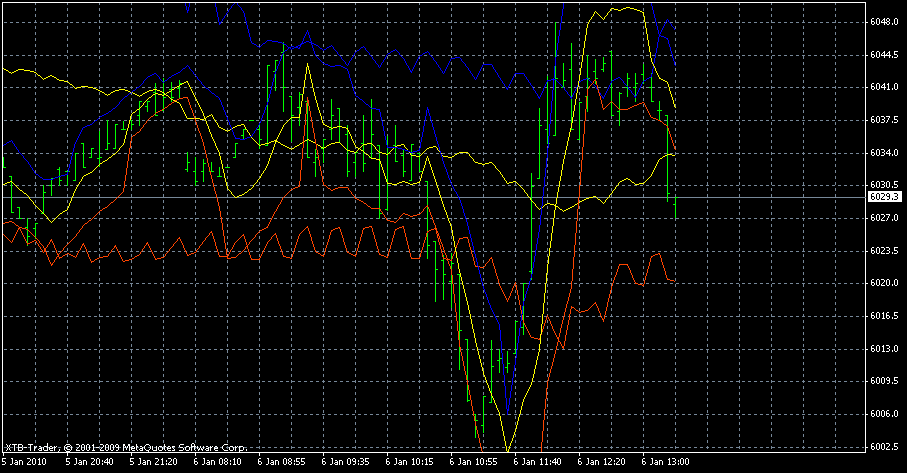 ansonsten mache ich auch öfter mal einen kleinen Scherz dazwischen: wie du an unterem Chart erkennen kannst, unterscheiden sich die Bars in ihren Farben; ich habe die Erfahrung gemacht, dass es ehr unwahrscheinlich ist, mehr als 7mal die gleiche Farbe hintereinander zu bekommen (die Farbe ist abhängig von der errechneten Steigung); somit erlaube ich mir entgegen den Systemangaben ab und an auch gegen den Trend zu spekulieren, wie vorhin, wo ich aus diesem Grunde nochmals gegen den Trend gewettet und tatsächlich noch 5,5 pkt. mitgenommen habe ...
