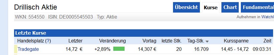 DRILLISCH FESTER NACH HOCHSTUFUNG