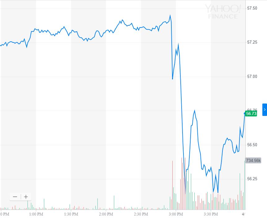 der Grund warum die Intel Aktie gestern innerhalb von Minuten von 57,47 auf 56,14 einbrach war die Einigung von Apple und Quarlcomm.
