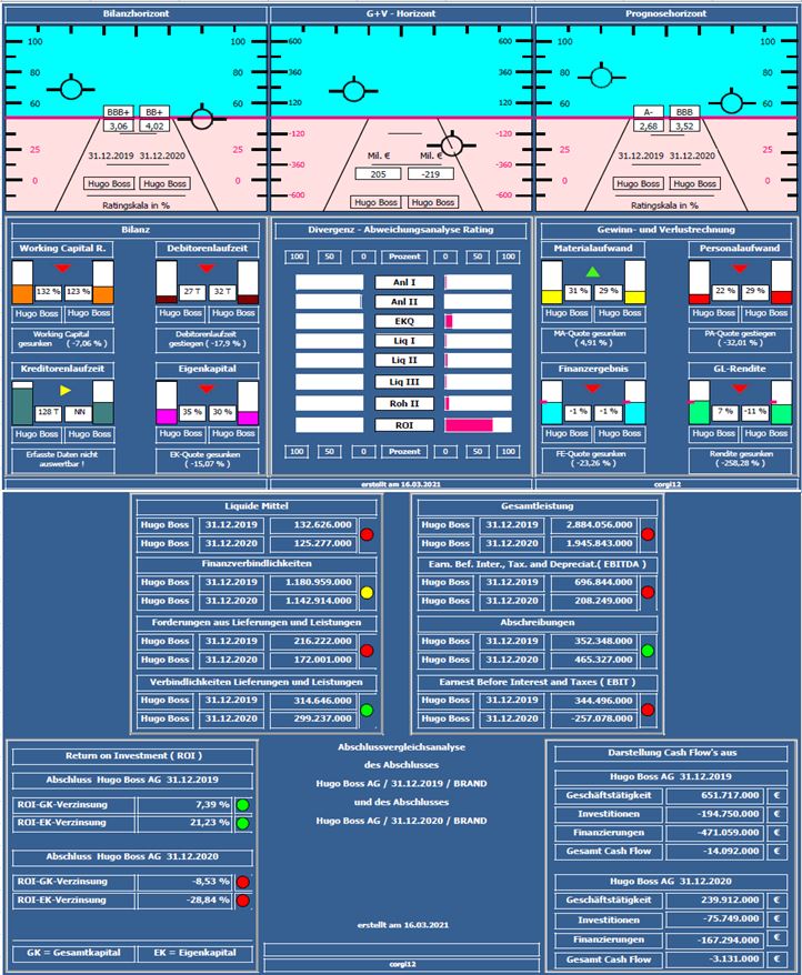 Um die Entwicklung aufzuzeigen, wurde der Jahresabschluss 2019 mit dem Jahresabschluss 2020 verglichen ( vor Corona und 10 Monate in Corona ). Häufiger wird angemerkt, warum Auswertungen mit alten Daten präsentiert werden. Bei den von mir erstellten Kurzanalysen handelt es sich um ein längerfristiges Projekt bei dem zunächst vorpandemische, danach dann inpandemische und zum Schluß nachpandemische Zeiträume dargestellt werden, um den Einfluß von Corona auf Unternehmen/Branchen zu dokumentieren.