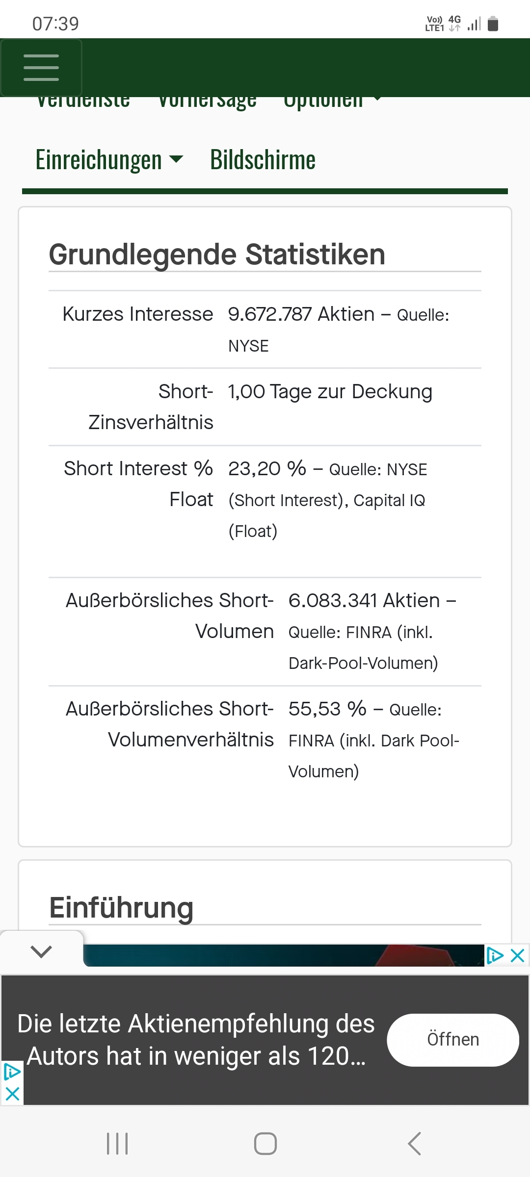 Das außerbörslichen short Intresse ist von gestern von 8.8mil. auf 6 mil. gesunken. Die Tage zur Abdeckung von 1.54 auf 1Tag !