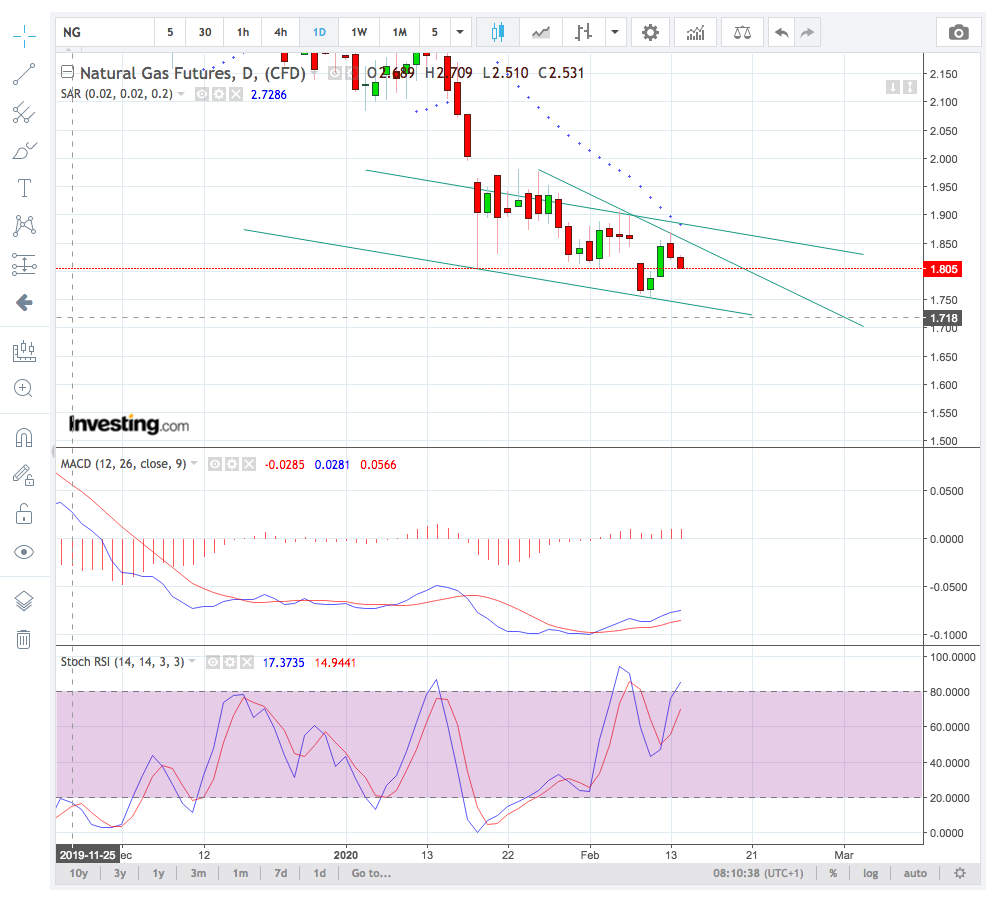 Der vormonatige Erdgas-Terminkontrakt für die Lieferung im März am Henry Hub belief sich am 6. Februar auf 1,86 USD / MMBtu, was einem Rückgang von 26 Cent / MMBtu ab dem 2. Januar entspricht.