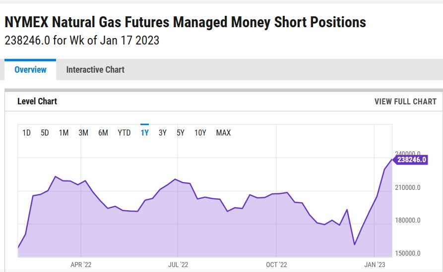 NYMEX Natural Gas Futures Managed Money Short Positions