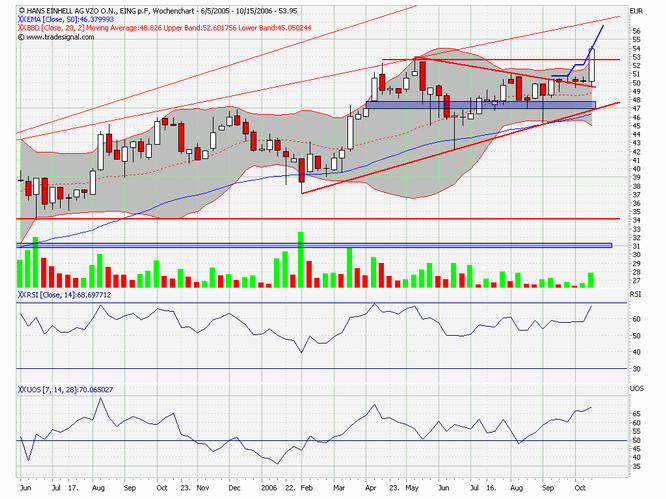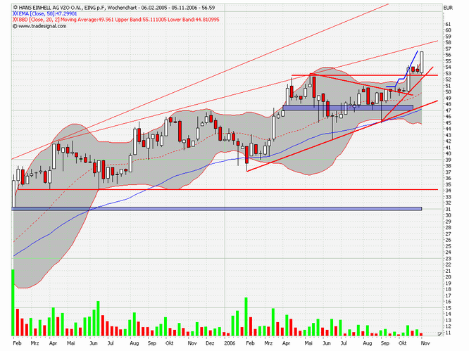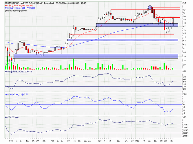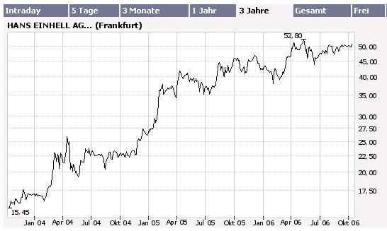 Die Einhell AG gibt im Rahmen der Hauptversammlung bekannt, dass der Konzernumsatz in den ersten 5 Monaten des Geschäftsjahres 2006 um 10,2 % von 169,6 Mio. Euro auf 186,9 Mio. Euro gestiegen ist. Das Ergebnis vor Steuern stieg von 9,2 Mio. Euro auf 10,8 Mio. Euro per Ende Mai 2006. Dies ist eine Steigerung von 17,4 %.