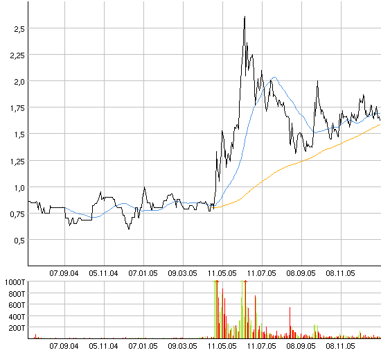 Kurs aktuell + 5% auf 2.05 Dollar; die Frag von aoffset hat sich damit zunächst mal erübrigt. 8)