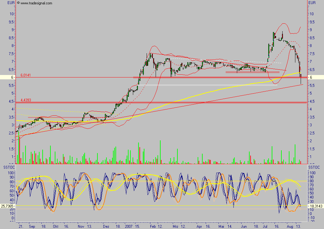 Zur Zeit ist die Aktie ziemlich gebeutelt worden und tut sich schwer, nach oben zu kommen.