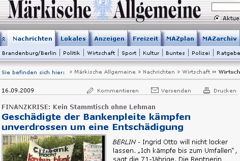 Lesens-wert ist der Articel der Märkischen Allgemeinen jetzt vom MITTWOCH (16.9.2009) aber gleichwohl, allein schon wegen des eingebetteten VIDEO's (man achte dort auf die Sequenz "Citibank macht Konten blank"):
