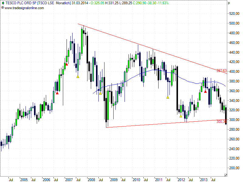 MehrWissen: Wahrscheinlich gibt's jetzt gute Kaufgründe. Immerhin, der Fedehandschuh wird aufgenommen, denn Tesco rudert bei den Frischeprodukten zurück. Gerade die, die morgens und auch sonst auf den Tisch in GB gehören / Milch an allererster Stelle, die werden einbezogen. Das ging schon vor einigen Wochen über die TV-Sender, nachdem Tesco diese Maßnahme (notwendige Preissenkungen - und die Erkennung dieser Warengruppen) selbst ggü. der Presse bekanntgegeben hatte. Fadenscheinig, wenn sich jetzt Goldman einmischt, wo's doch -- begleitet vom Cramer -- über den TV-Sender CNBC lief. Frage: Wer hat Informationen zur Dividendenzahlung Anfang JUNI 2014? .... Da wären viele Aktienhalter - auch Fonds - betroffen;sicherlich die meisten in GB selbst. Ist die Dividendensenkung denn schon ausgemacht?