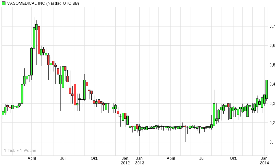 Ich vermute bei 0,34$ auch eine Art Boden. Es könnte sein, dass Vasomedical auf diesem Niveau eine Weiterführung ihres Aktienrückkaufprogrammes durchführt. Dafür spricht das Volumen der Letzten 3 Handelstage, ohne signifikante Änderung der Nachrichtenlage.