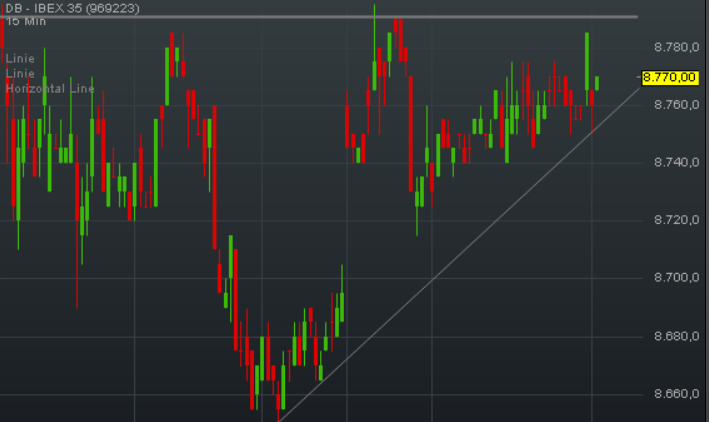 Bei 8785 Abschluss steigendes Dreieck dann Short