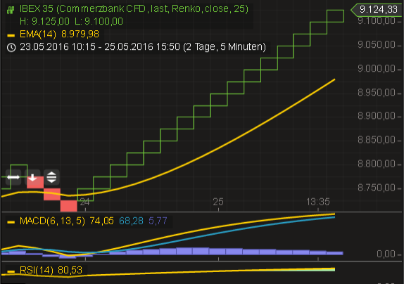Die Bullen werden durchs Dorf getrieben IBEX erneut mit 1% dick im Plus, weit mehr als der DAX