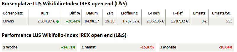 Doch darf ich auf den Performancevergleich der letzten drei Monate hinweisen, da konnte ich 31 Prozent ertraden, das IREX leider nur negative minus 10,04 Prozent.