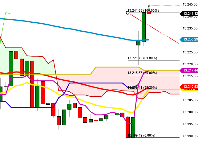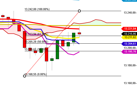 Die anvisierte tägliche Wikisteigerung um ca. 7000 ist eingetütet. Feierabend an der 13217 beim DAX und Wikiwert 223.