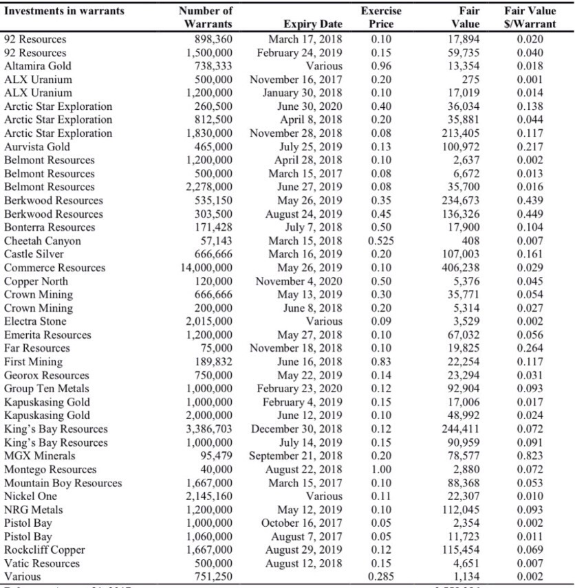 Warrantstausch im 1. Jahr bis 17. Februar 0,075 Chris Grove, President des Unternehme­ns, erklärte: Wir freuen uns ungemein über die Unterstütz­ung der Regierung von Quebec in Form dieser Investitio­n von Ressources­ Québec. Die Provinz Quebec bewährt sich weiter als eines der attraktivs­ten Rechtssyst­eme für die Erschließu­ng eines Rohstoffpr­ojekts. Mit Begeisteru­ng sehen wir der Weiterentw­icklung unseres Projekts Ashram mit den eingenomme­nen Mitteln entgegen.