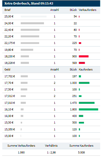In diesem Fall kommt noch hinzu, dass 900 Stück auf beiden Seiten dem Marketmaker gehören. Im Grunde steht also fast nichts auf der Verkaufsseite.