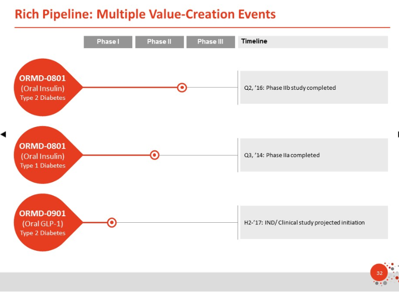 In September 2013, we submitted a pre-IND package to the FDA for ORMD-0901, our oral exenatide capsule, for a Phase II clinical trial on healthy volunteers and type 2 diabetic patients. In August 2015, we began a non-FDA approved clinical trial on type 2 diabetic patients. The trial was completed during the second quarter of calendar year 2016 and indicated positive results as it showed ORMD-0901 to be safe and well tolerated and also demonstrated encouraging efficacy data . We completed a toxicology study in March 2017 and anticipate receiving the results during the second quarter of calendar year 2017 and expect to file an IND and move directly into a pharmacokinetics study followed by a large Phase II trial in the United States.