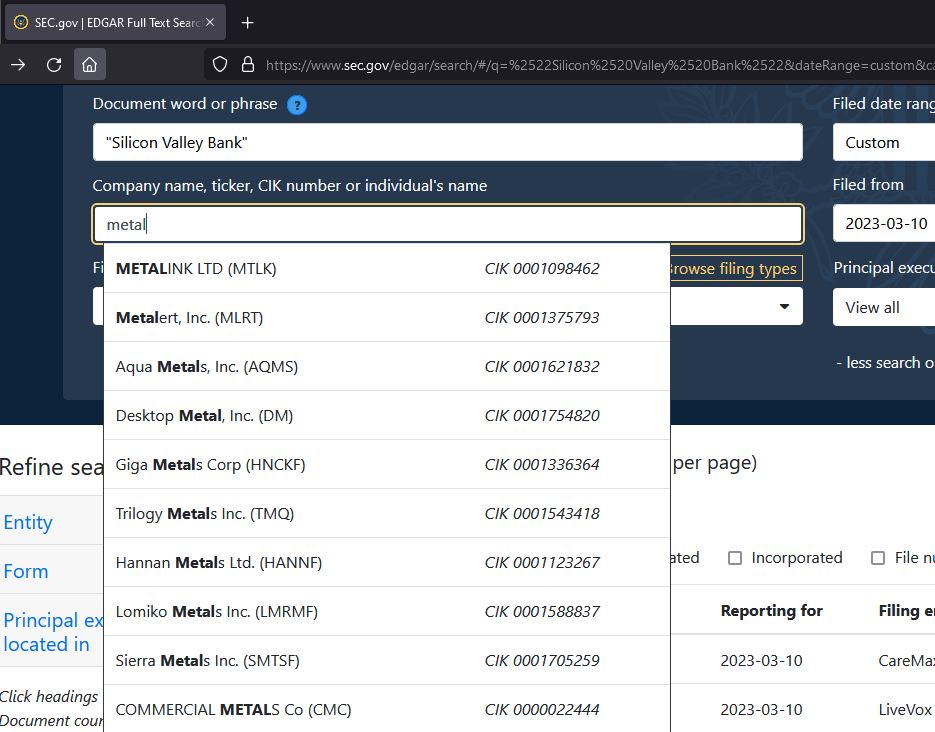 Auf stocktwits macht gerade ein Gerücht die Runde, Metal hat 14% Cash in SVB