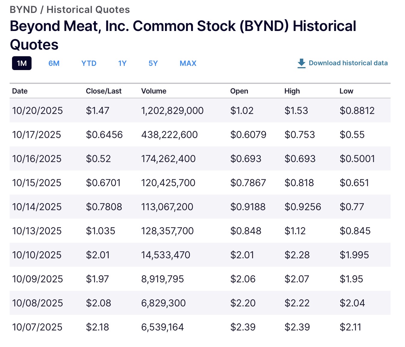 Die Kursschwankungen der Beyond Meat-Aktie machen dieser Tage sogar erfahrene Achterbahnfahrer schwindelig. Von Montag bis Donnerstag crashte der Kurs des Herstellers von Fleischersatzprodukten von 2,01 auf 0,52 US$. Am Freitag gab es bereits eine leichte Erholung auf 0,65 US$, doch am gestrigen Montag schoss die Beyond Meat-Aktie um +128% auf 1,47 US$ hoch und der Rebound setzt sich am Dienstagmorgen im europäischen Handel fort. Was ist da bloß los und welche Chancen eröffnen sich Anlegern hier?
