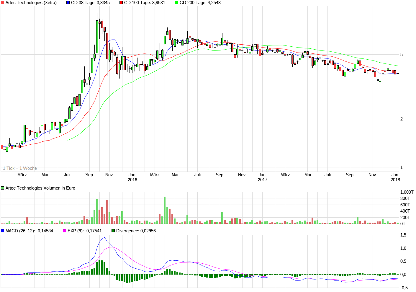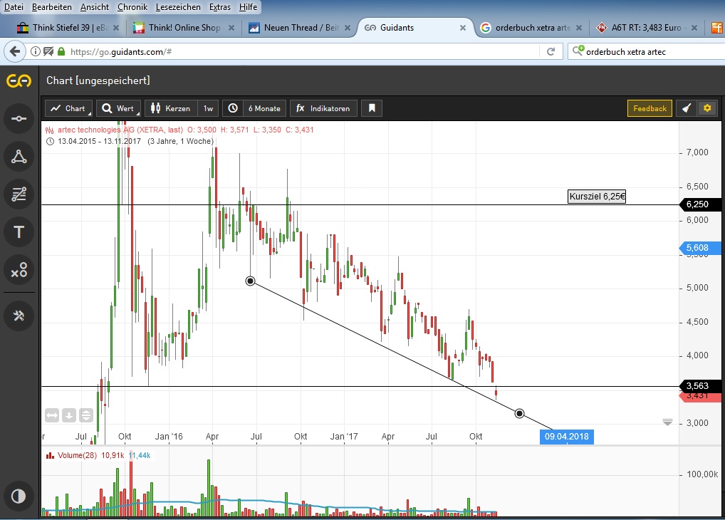 Pushversuch? Mir sieht das doch wie eine Falle aus. Am Tiefpunkt des Trends kommt jetzt so eine tolle Analyse. Ist doch klar, dass es jetzt wieder etwas aufwärts geht und die Leute denken Juhuu jetzt kaufen über 80%. Aber ganz ehrlich: wir sind jetzt sogar unter die letzte große Unterstütz­ung ca. 3,56€ gefallen. Bin gespannt wie der Wochenschl­usskurs ausfällt. Ich will hier niemanden positiv oder negativ beeinfluss­en und ich will auch nicht bashen, aber wo bitte schön sollen jetzt die 80% herkommen?­ Ok klar wenn morgen die Meldung kommt: US-Außenmi­nisterium und Geheimdien­ste bestellen bei Artec... Naja wers glaubt ;-) Wünsche allen die heute die möglicherw­eise günstigen Kurse zum Einstieg/N­achkauf genutzt haben viel Erfolg. Ich warte noch ab und kann damit leben wenn andere die vollen 84% schaffen!