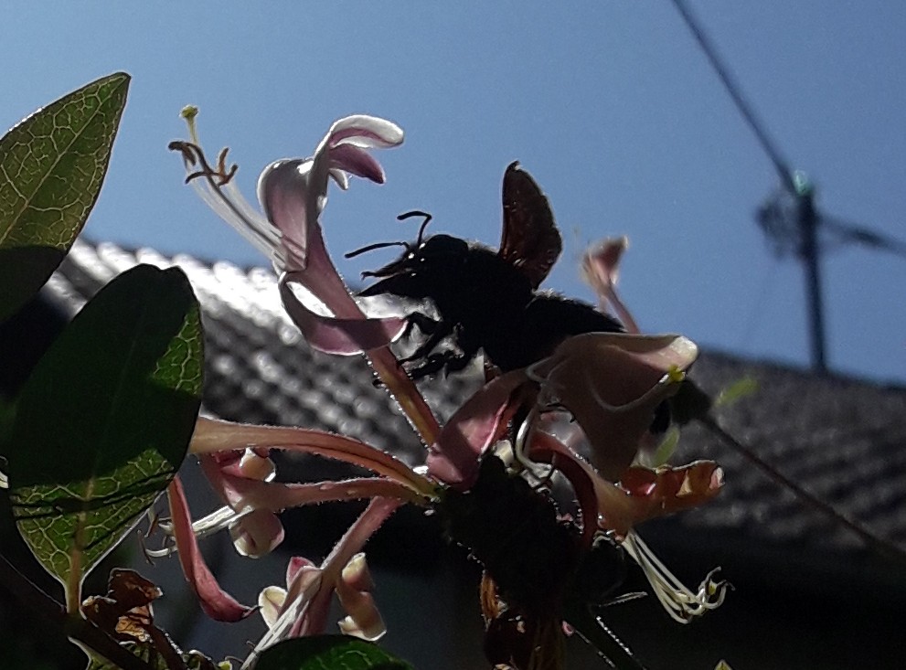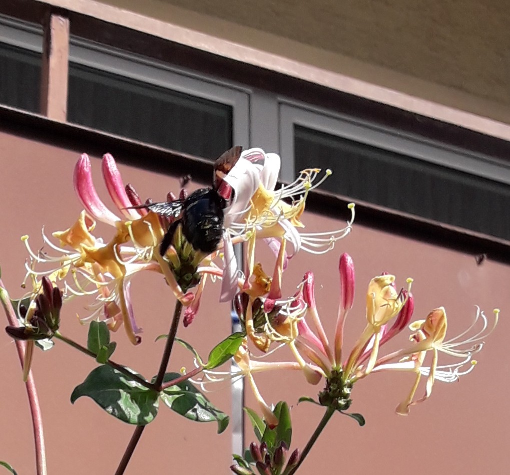 ja - seltsam hat Recht - derzeit sind es 3 Holzbienen, die mich jeden Tag besuchen....was für ein Gebrumme ;-)