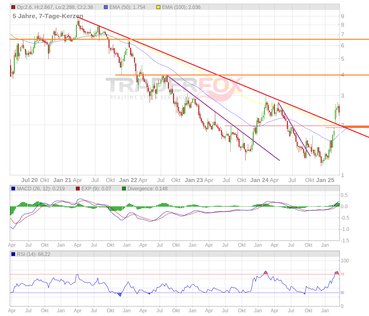 Übergeordnet würde ich nicht ausschließen, dass man das Gap bei 1,91 € noch schließt. Also hätte man aktuell noch 20% Risiko.