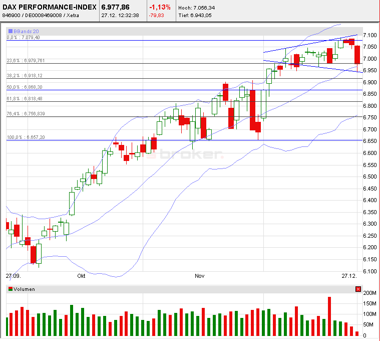 Nun stellt sich die Frage, über nacht halten oder abstoßen. Es besteht natürlich die gefahr, da ich dann morgen früh gleich ausgenockt werde, wenn wieder sowas passiert, wie heute...allerdings gehe ich morgen von Kursen richtung 7000 aus, die 6950 bzw. 6953 haben ja gehalten, da gings ja wieder hoch...