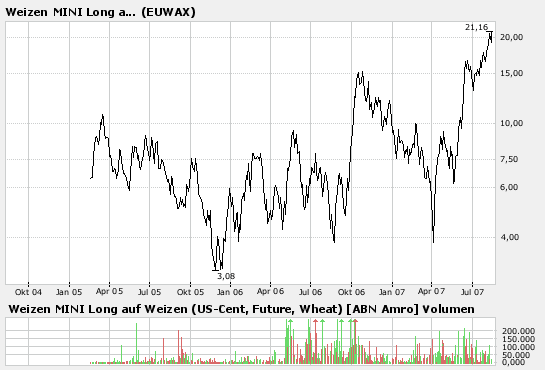 ...was solls, denke mal, daß ich genau wie mit dem Orangensaft-Zertifikat gutes Geld machen werde. Tippe mal, daß der Weizen aus bereits oft diskutierten Gründen noch ein kleinwenig steigen wird.