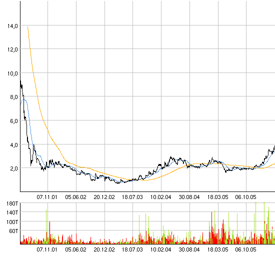 | München | ![]() | 3,90 EUR | +0,02 | +0,52% | 27.04. | 09:03:03 | 3,90 | 3,95 | 4,05 | 2,47% | 600 | 600 |