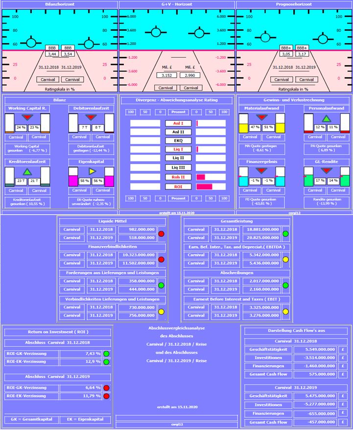 Negativ: Jahresüberschuß um ca. 5%, gesunken, Nettofinanzverbindlichkeiten um 1,643 MRD. £ gestiegen, Working Capital Ratio mit 23% , normalerweise kein Problem, da in den kurzfristigen Verbindlichkeiten erhaltene Anzahlungen von Kunden sind, die nicht zurückgezahlt sondern abgearbeitet werden. in diesen Krisenzeiten aber sehr wohl, da eine Rückzahlungsverpflichtung, wenn auch in Gutscheinen besteht.