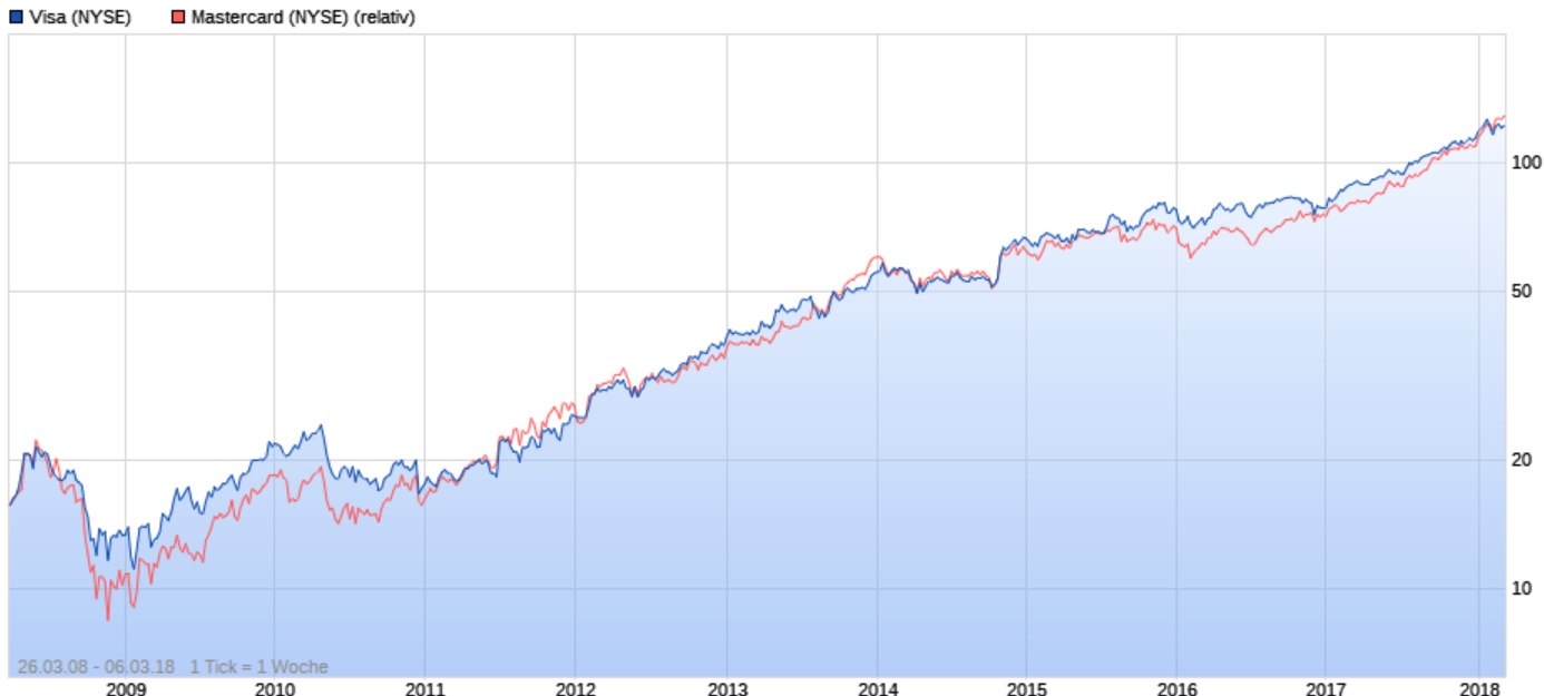 Da ich mich nicht zwischen den beiden entscheiden konnte, habe ich einfach Visa und Mastercard in mein Depot geholt.