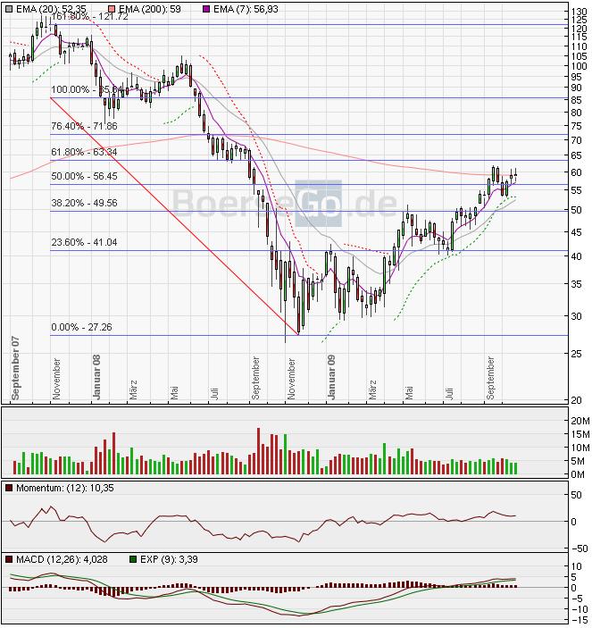 knacken. Dann findet sich erst bei 65 € der nächste Widerstand aus August '08