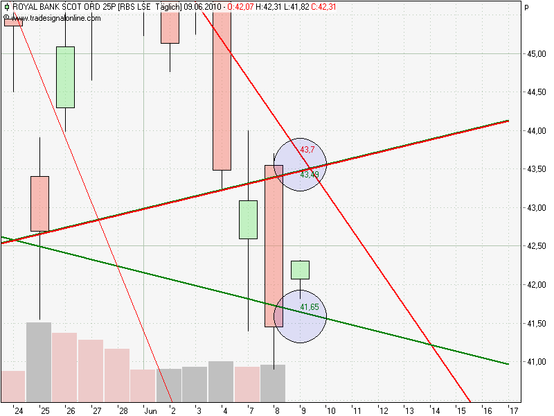 Die Unterstützungslinie 41,56p hat gehalten aber der Widerstand 43,21p auch .