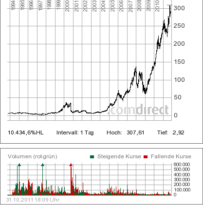 Wenn man sich den Apple-Chartauf www.ariva.de logarithmisch (02.05.1994-31.10.2011) anschaut, frage ich mich,