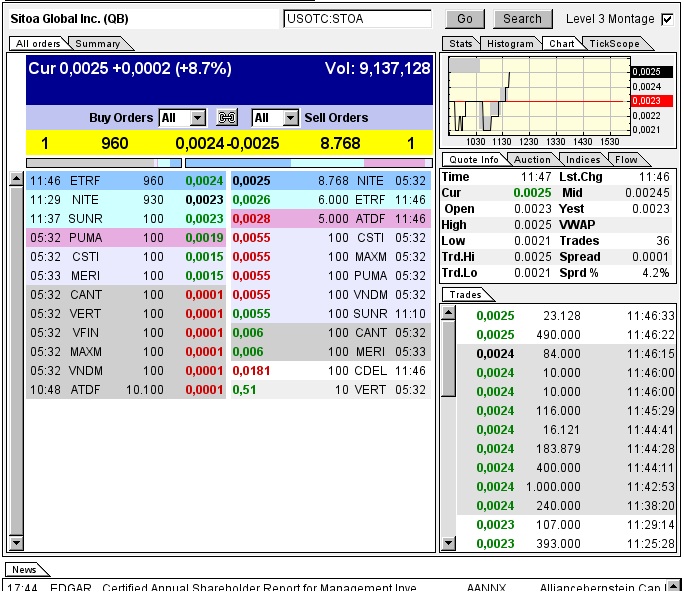 http://www.otcmarkets.com/stock/STOA/quote (Hier siehst du BID/ASK in Real Time)