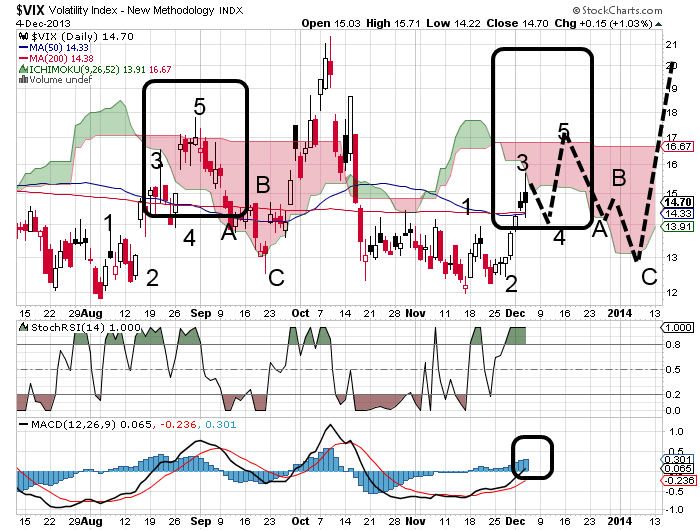 Nächste Woche dann Vix Welle 5 mit Anstieg auf 17....Indizes müssten weiterhin etwas Korrigieren...wahrscheinlich bis 15 Dezember.....